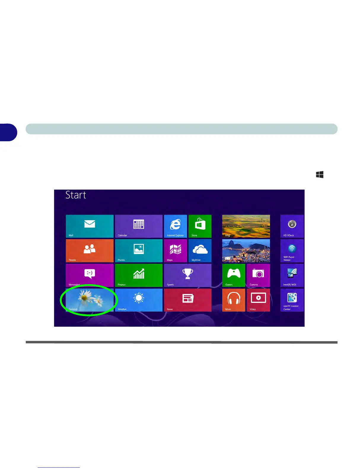 cessed by clicking/tapping the Desktop item in the Start screen (or by using the Windows Logo Key + D
