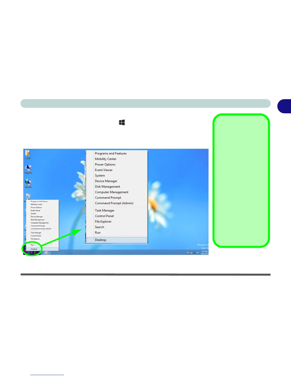 hot corner (or use the Windows Logo Key + X key combination) to bring up an