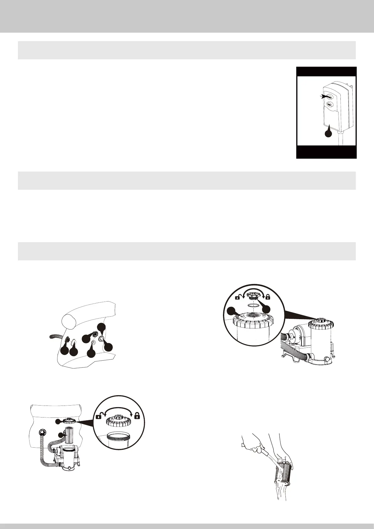 6. Pour arrêter la pompe filtrante, appuyer sur l’interrupteur sur la pompe et débrancher la fiche GFCI