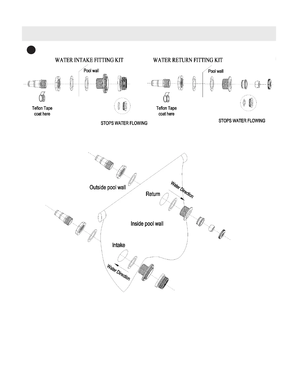 14. WATER INTAKE & RETURN FITTING INSTALLATION DIAGRAMS