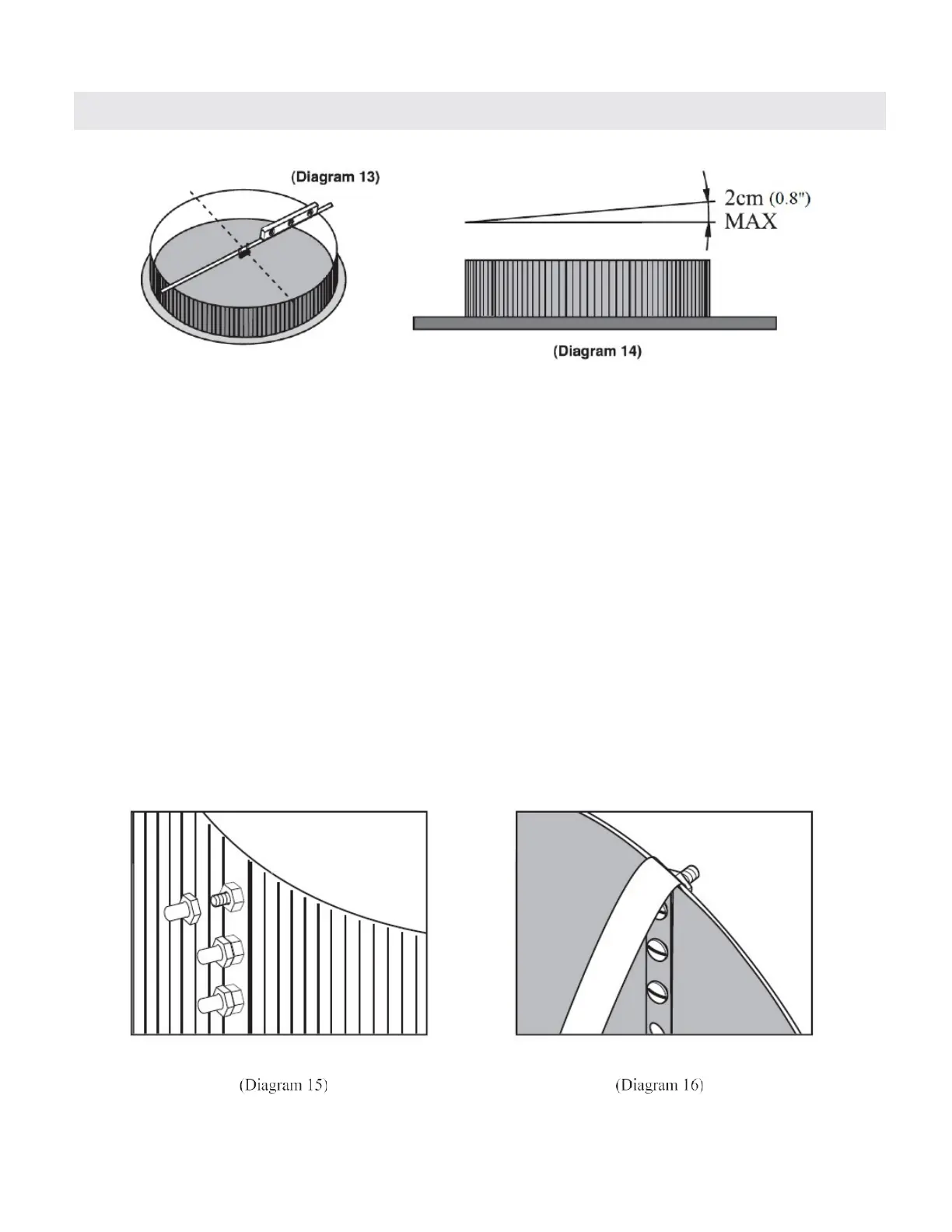(see diagram 13). If the pool is not level then remove the pool wall, dismantle the pool frame, and