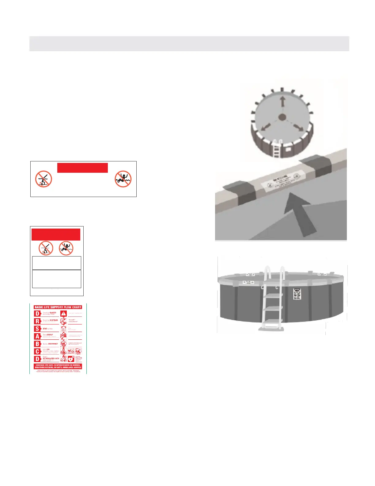 • Install all safety warning decals and signs included with the pool.