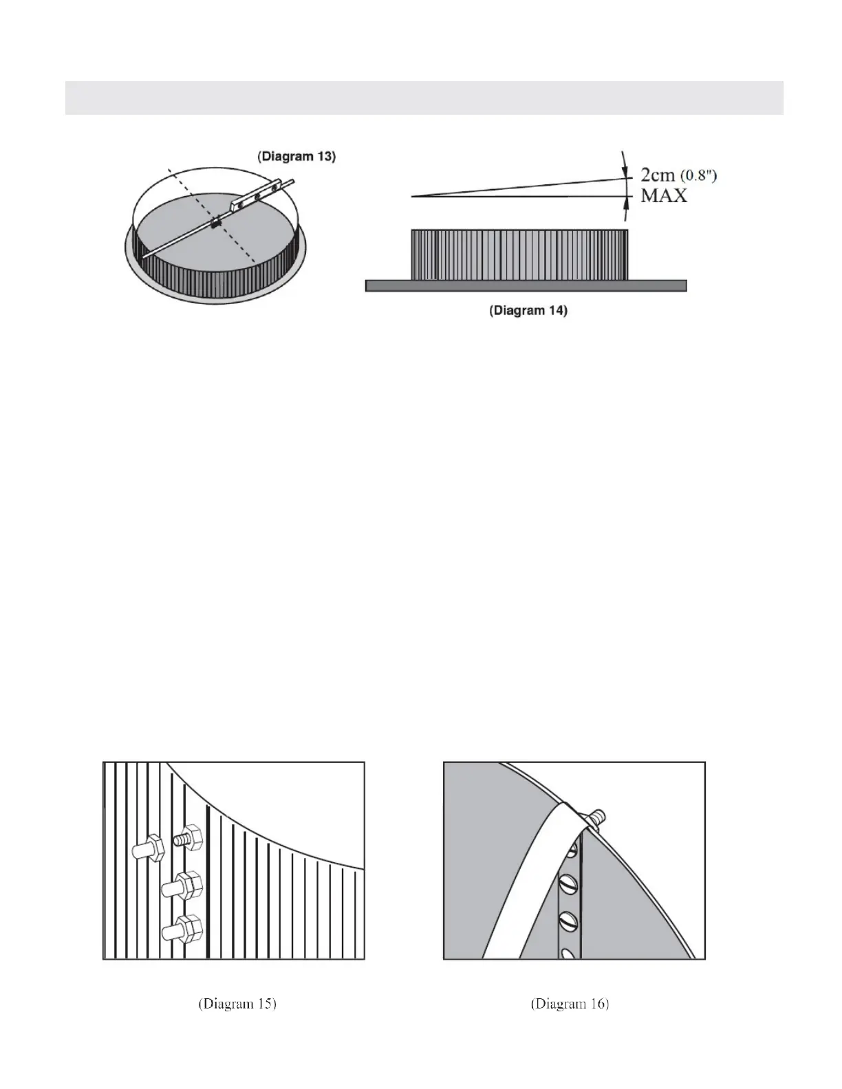 étape. Des boulons muraux desserrés peuvent provoquer l’effondrement de la piscine et ne sont pas