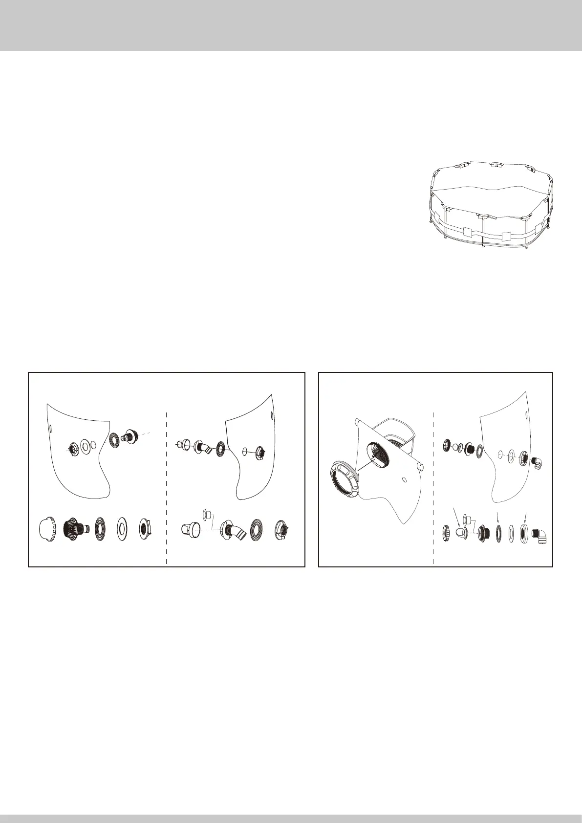 doit se trouver à l’intérieur avant que le raccord ne soit inséré dans la paroi de la piscine pour que le joint soit étanche.