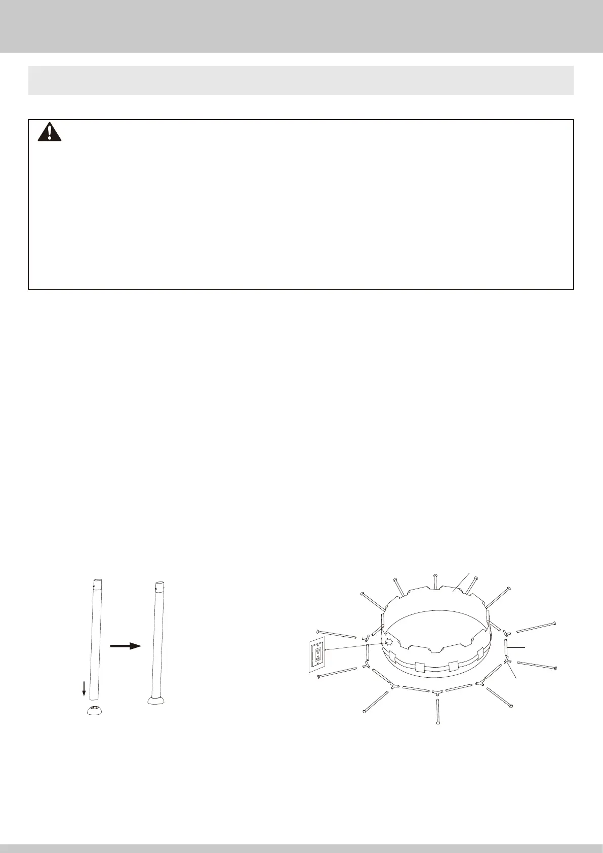 • Cette piscine doit être assemblée sur un sol ferme, horizontal, lisse et exempt de pierres, gravier, bâtons, bitume et autre composé d’hydrocarbure.