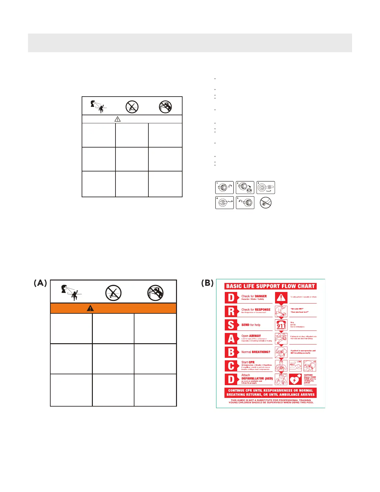 CPR SIGN (B): Must be installed near the Warning Sign (A). It should be easily seen from the house or the