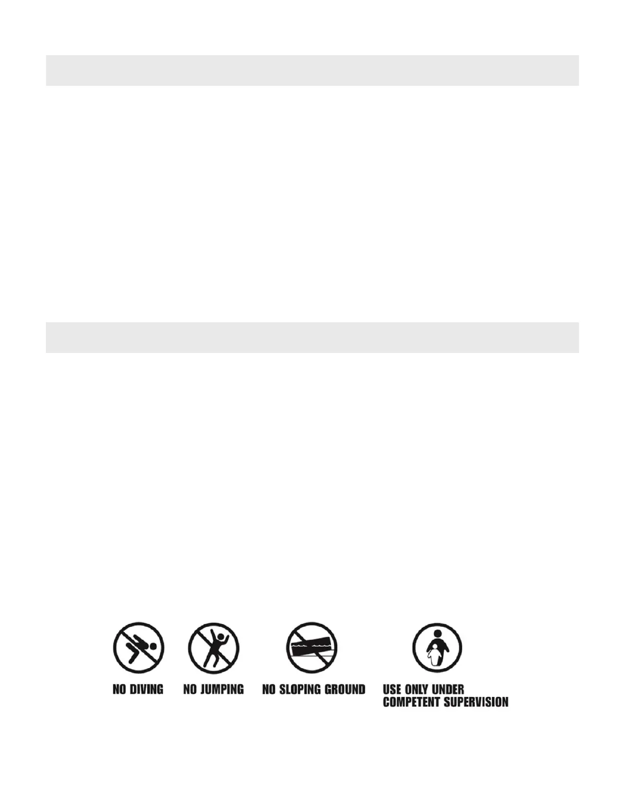 WARNING: NEVER enter the pool via any decks or other raised surface, the water level of the pool is shallow.