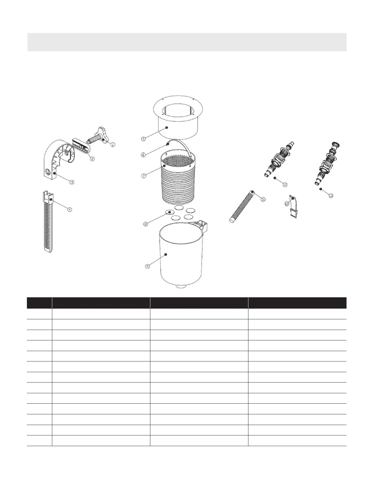 FLOATING SKIMMER - PARTS LIST (Not to scale)
