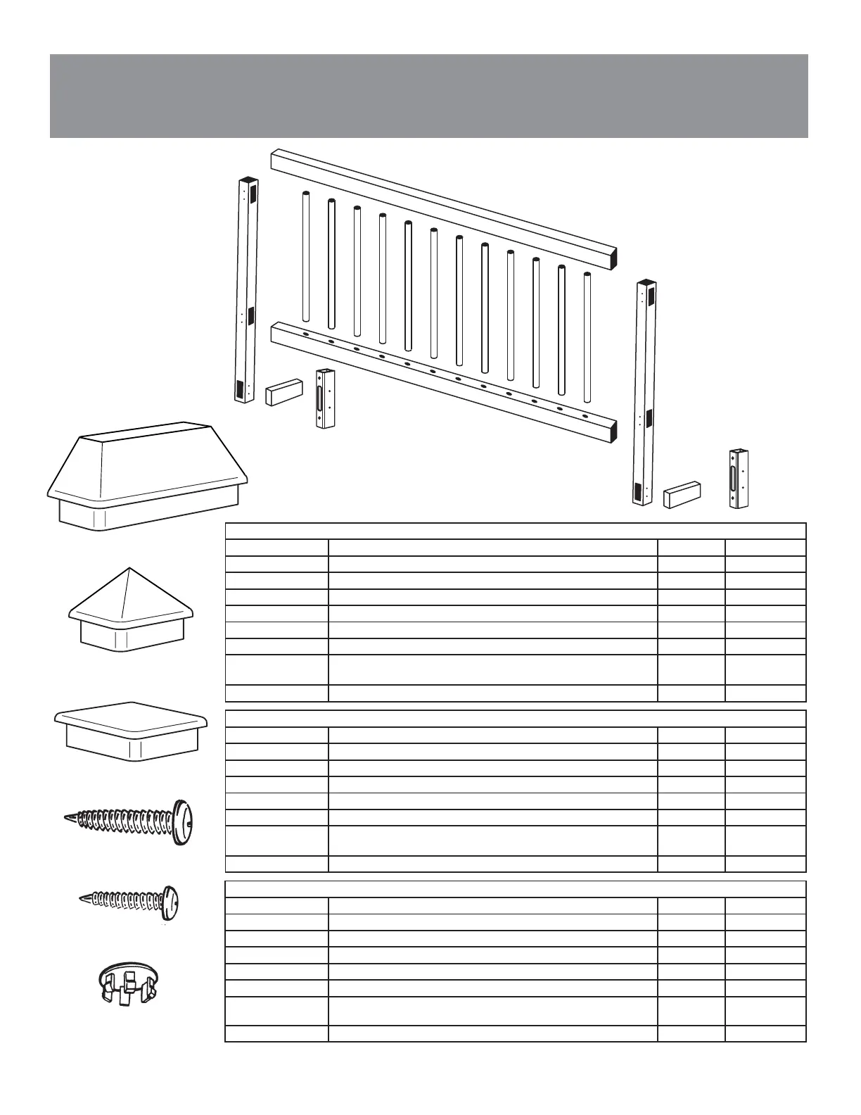 (1) Capuchon de poteau, (1) capuchon de support de base,