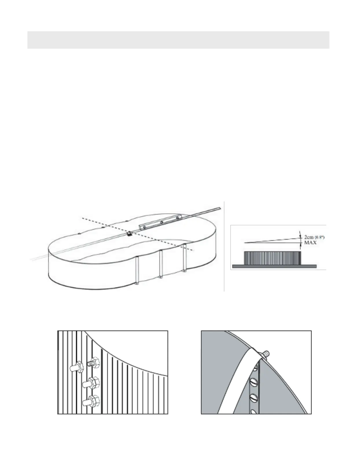level the ground site. Also, check if the ends of the pool wall are properly curved. Measure across a