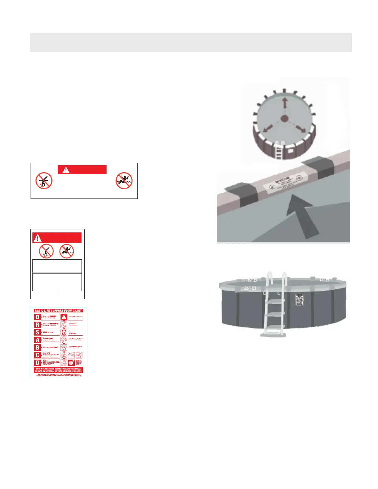 • Install all safety warning decals and signs included with the pool.