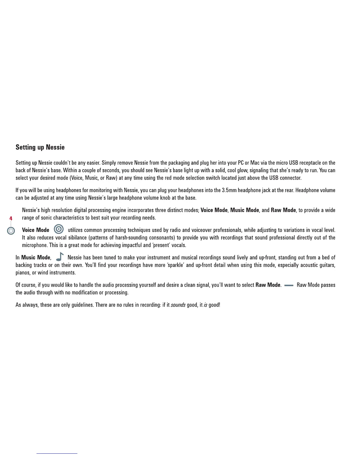 Blue Nessie - Setting Up Nessie; Connecting Nessie; Understanding Recording Modes