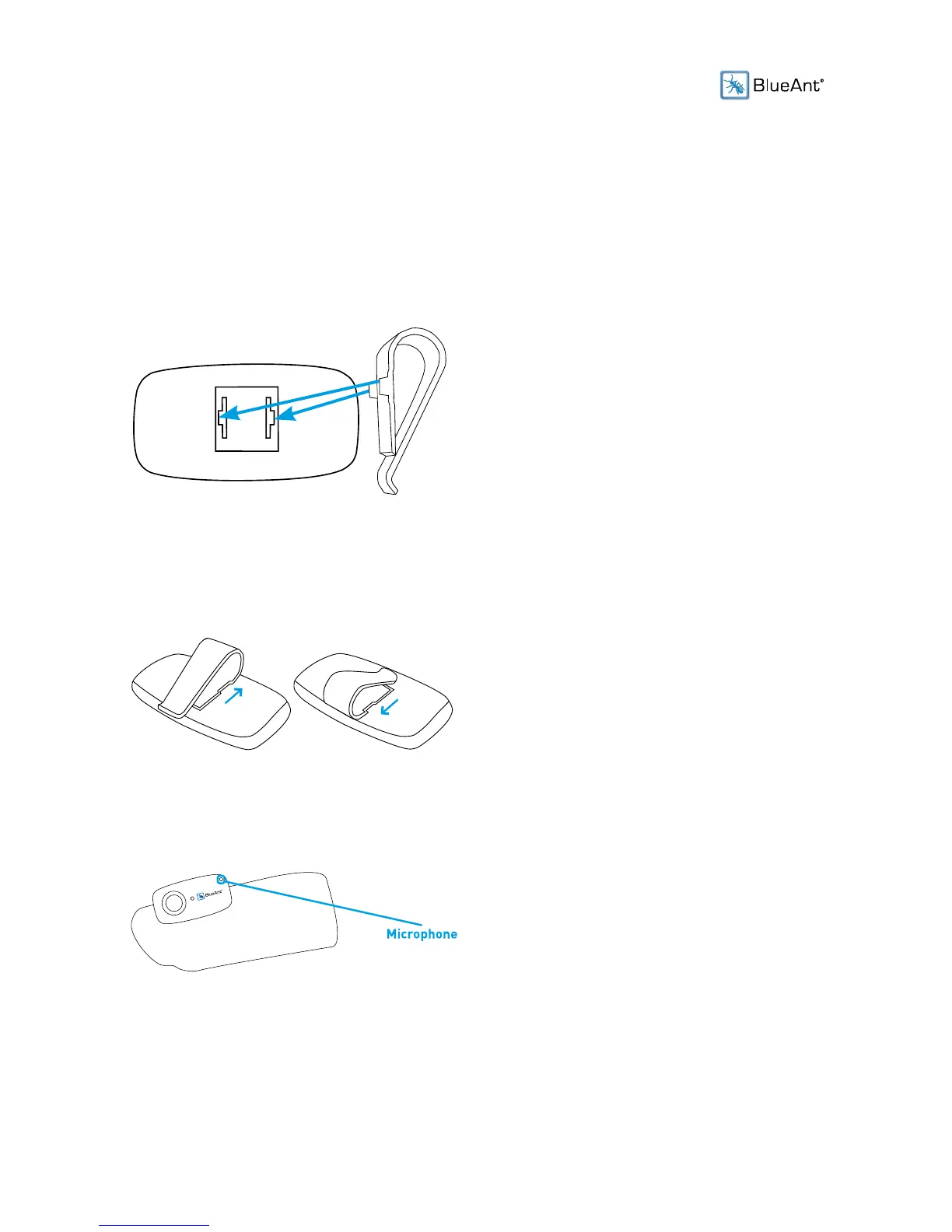 The closed side of the clip should be aligned with the top or bottom of the BlueAnt S1.