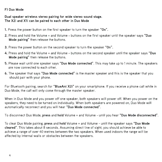 6. The speaker that says "Duo Mode connected" is the master speaker and this is the speaker that you