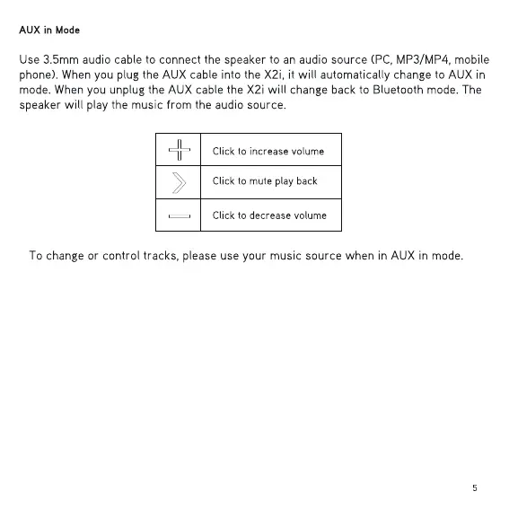 mode. When you unplug the AUX cable the X2i will change back to Bluetooth mode. The