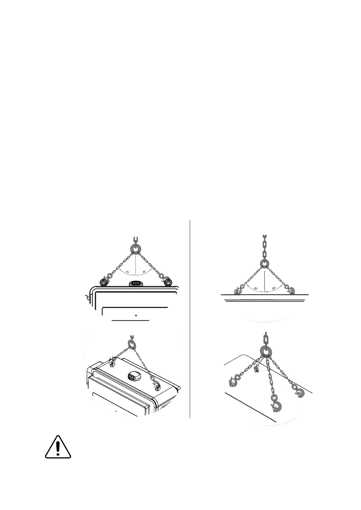 case, the angle must be 45º for the weight to be evenly distributed between the eyebolts.