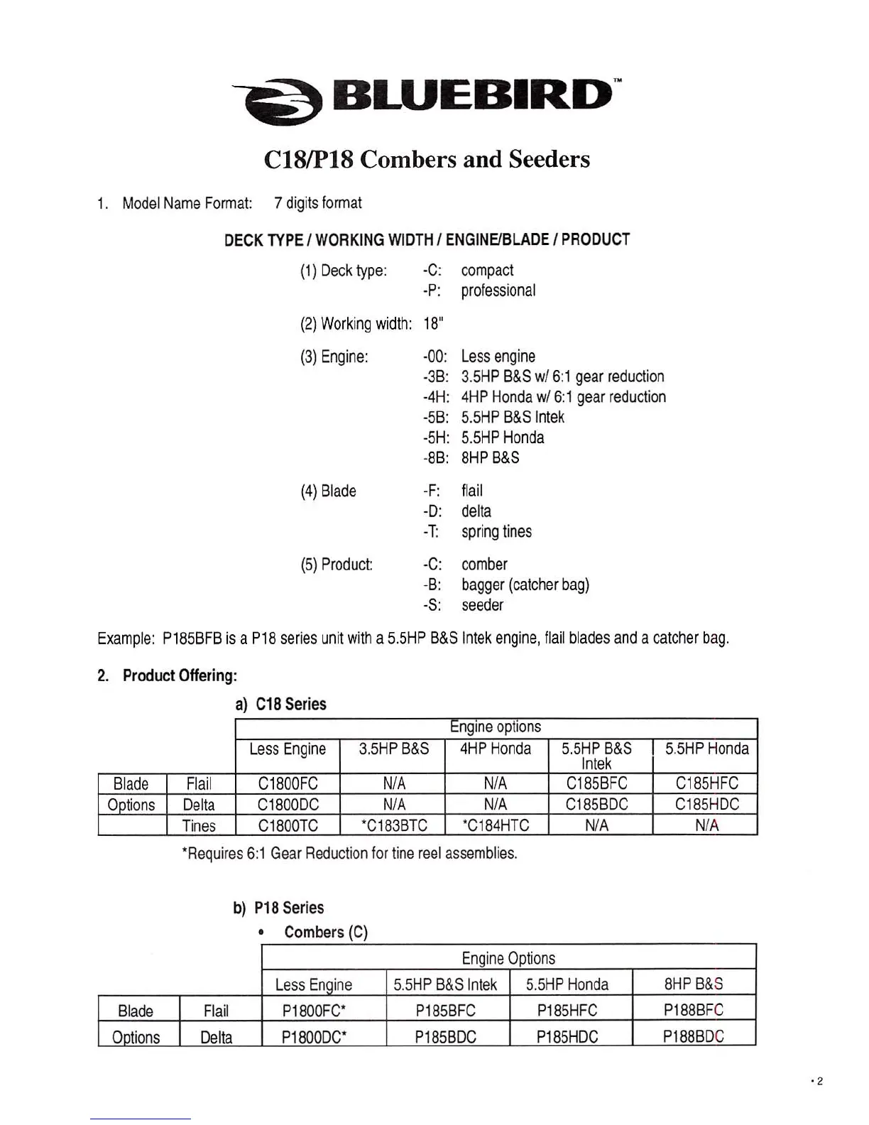 Bluebird C18 - Model Name Format and Product Offering; Model Name Format; Product Offering