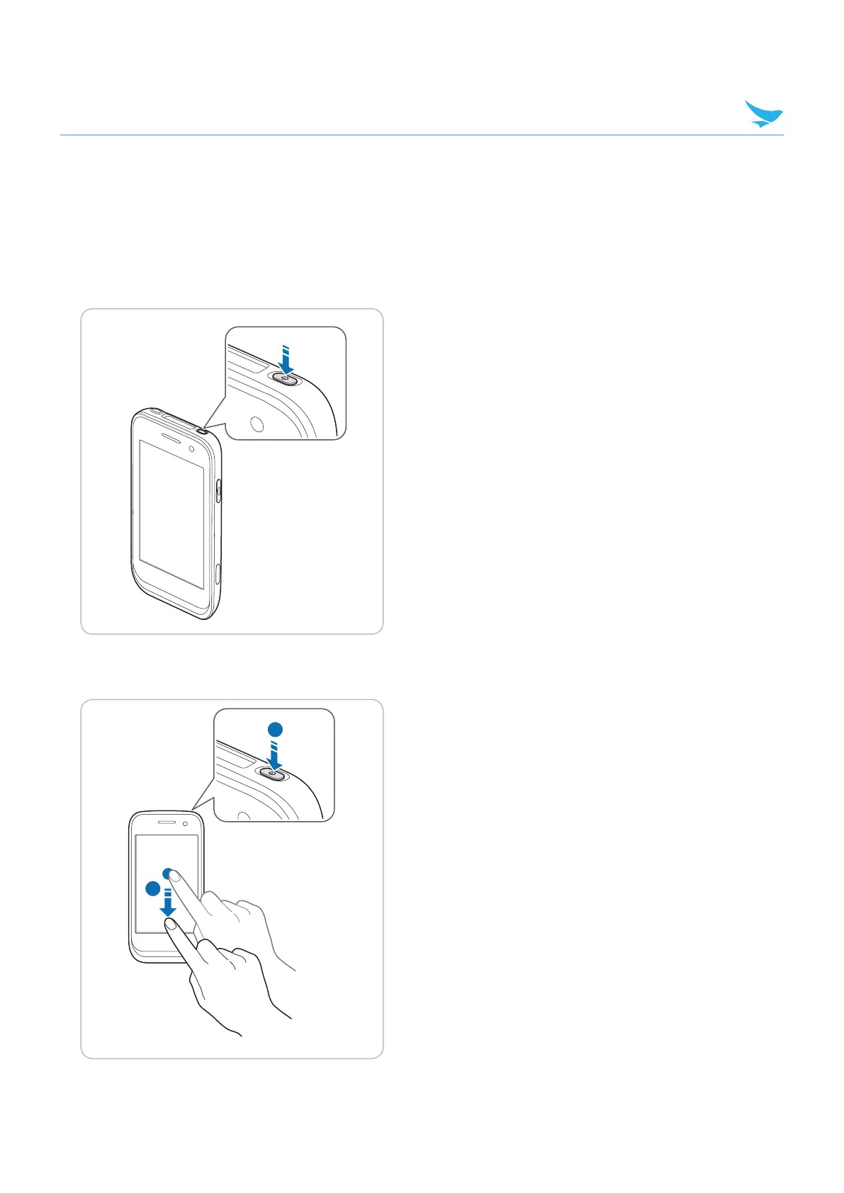 To turn off the device, press and hold the Power button for a few seconds, and then drag the “slide down