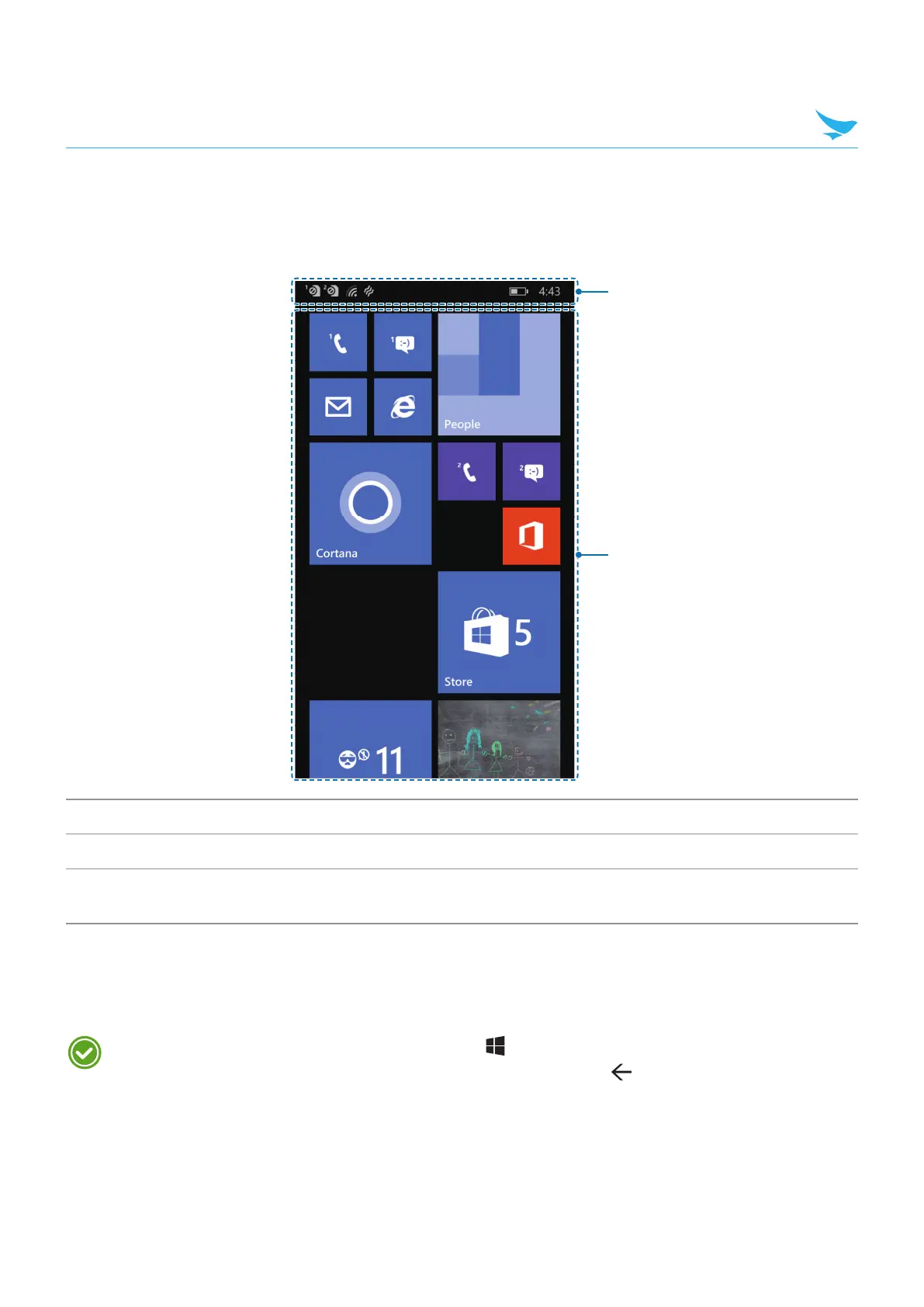 t To return to the Start screen, tap the Start button at any time from any menu or app.