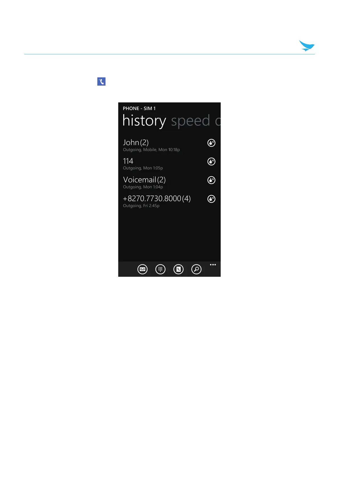 ap a name or a number in your history list to dial the number