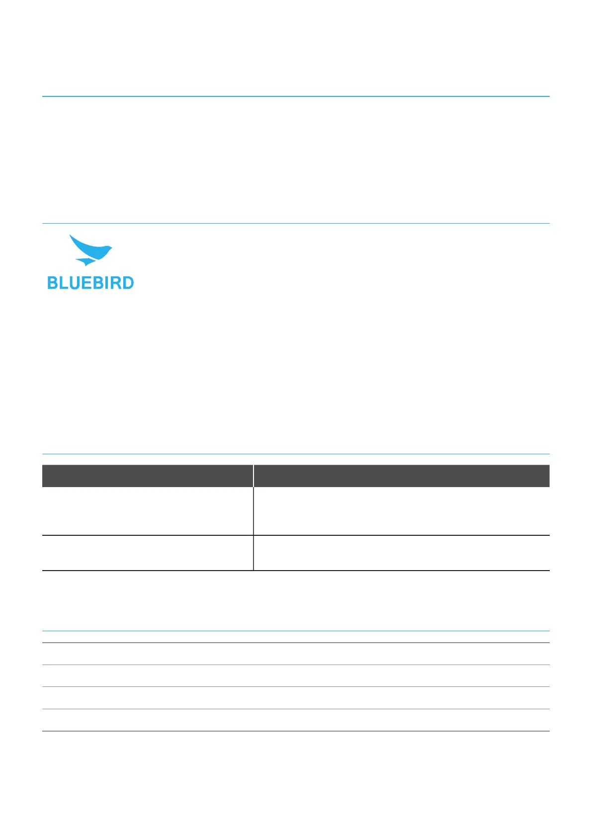 • Bluebird and stylized Bluebird Logo are registered trademarks and symbols of Bluebird Inc.