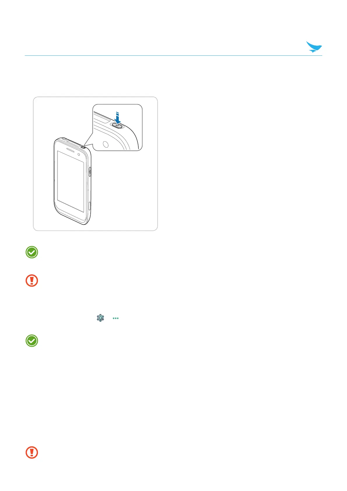 To turn on the device, press and hold the Power button for a few seconds.