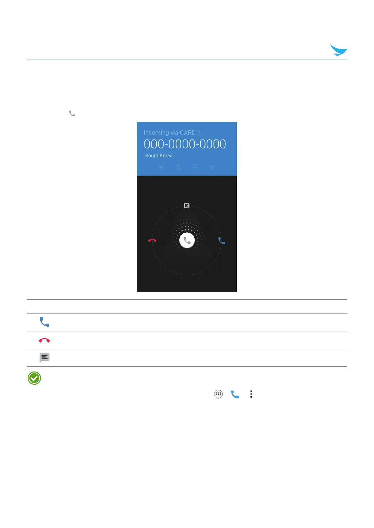 When you receive a phone call, the incoming call screen opens with the caller ID, and any other available