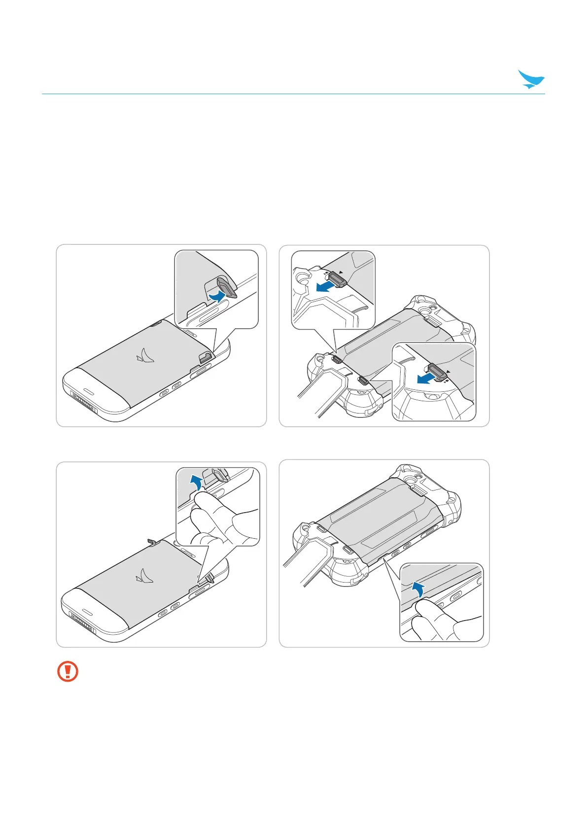 For the EF500R device, untie the handstrap and slide down the battery locks to unlock the battery cover.