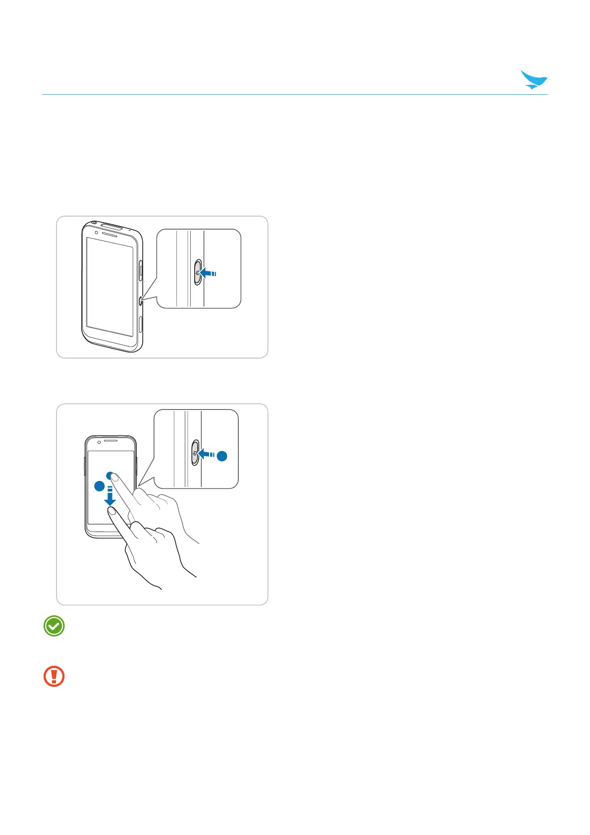 To turn on the device, press and hold the Power button for a few seconds.