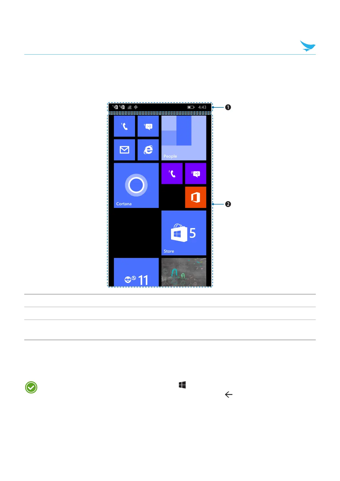 • To return to the Start screen, tap the Start button at any time from any menu or app.