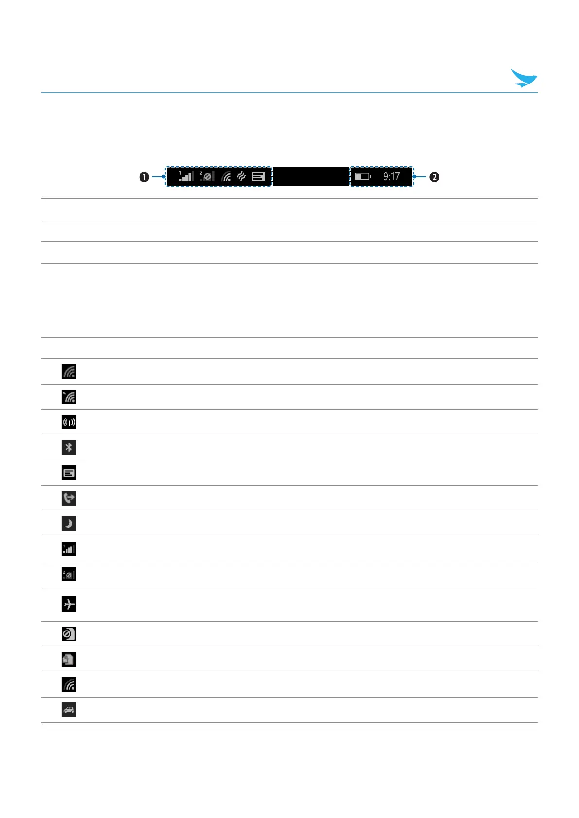 Notification icons in the status bar alert you to notifications, such as upcoming events, network or Bluetooth
