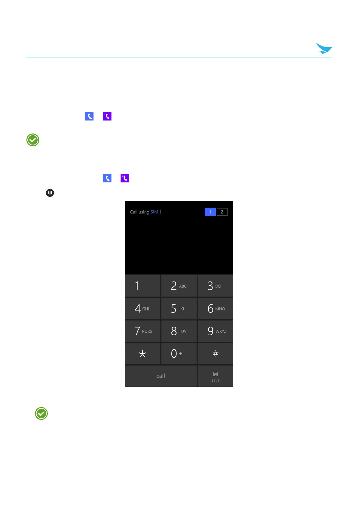 or , or tap Phone - SIM 1 or Phone - SIM 2 on the Apps screen. You can
