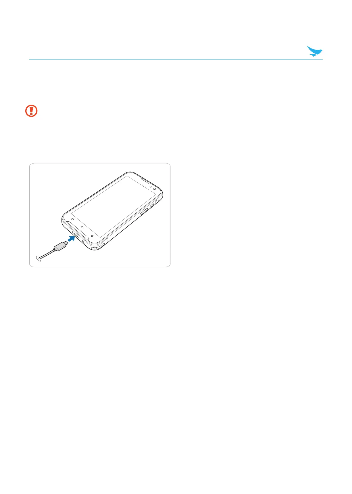 1 Plug the C-type end of the charger into the multi-purpose jack on the buttom of the device.