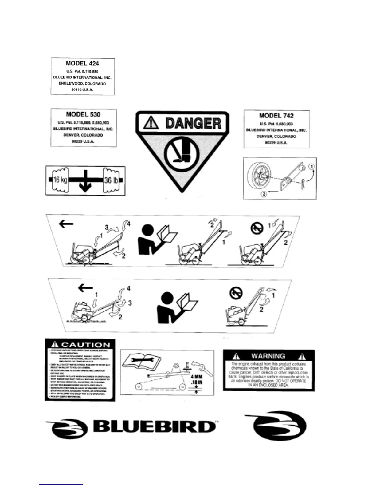 The following decals are found on Model 424,530 and 742 aerators. If any are missing or not