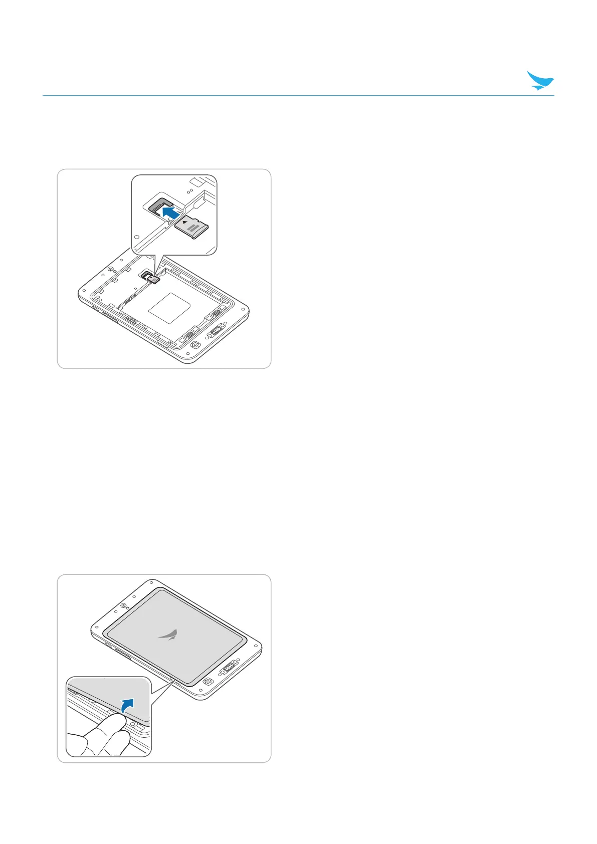 Align a micro SD card with the slot. Make sure that the gold contacts on the card are facing down. Slide the