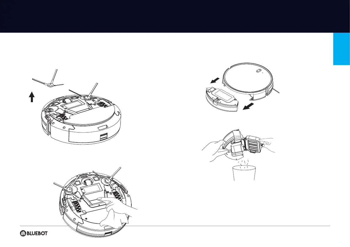 1 Turn over the robot and wipe the suction port with a clean and dry cloth.
