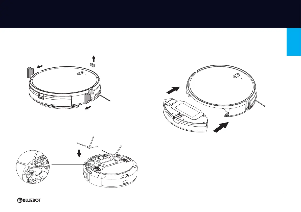 2 Install the brushes. Make the left side-brush (L) and the right-side brush (R)