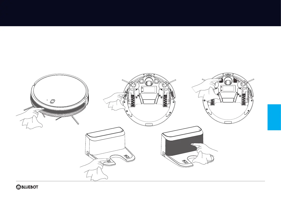 aan de onderkant van de robot (sluit de stroom af tijdens het schoonmaken).