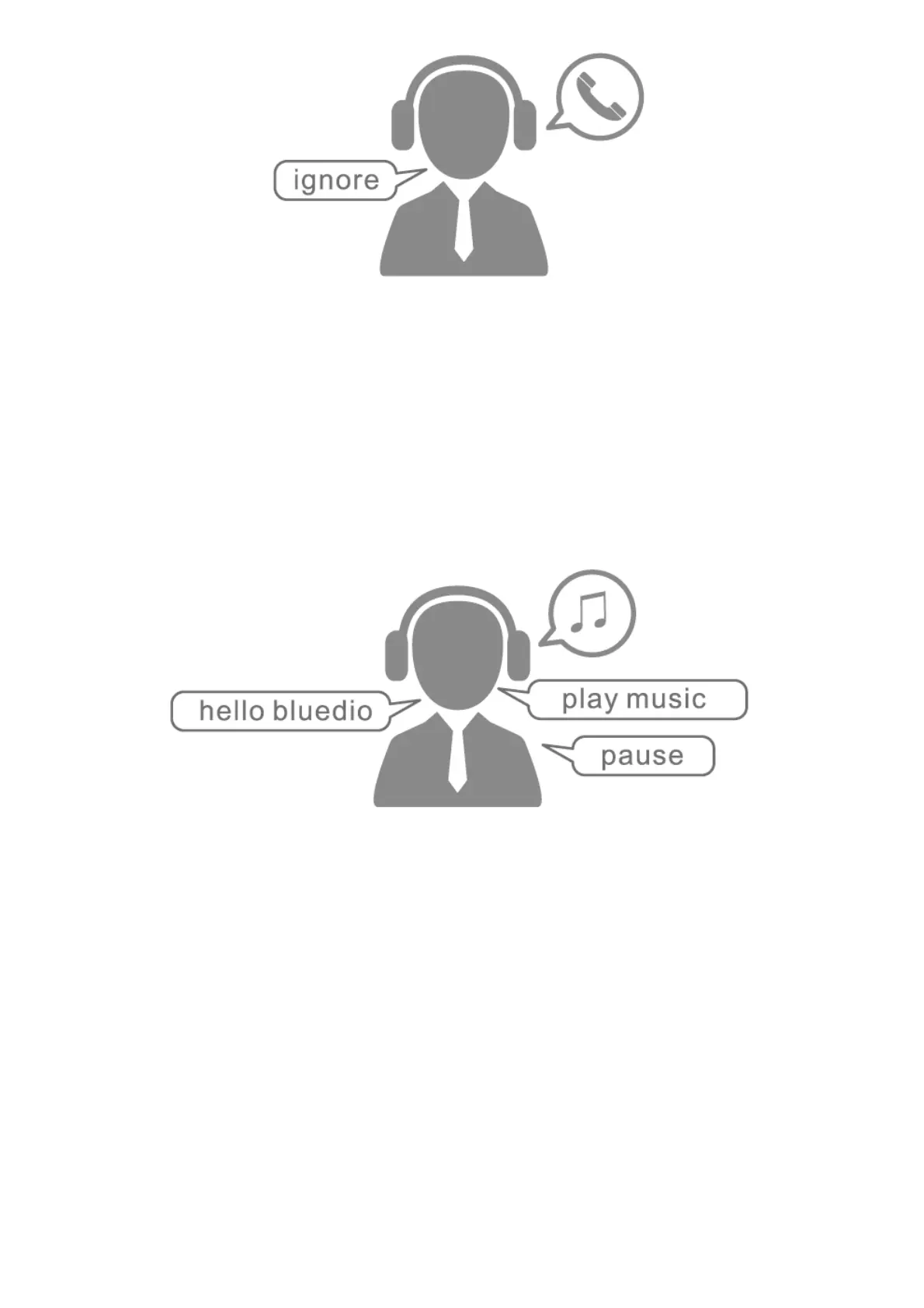 1. When playing music, say “hello bluedio” to activate the voice control, and then say “pause” to