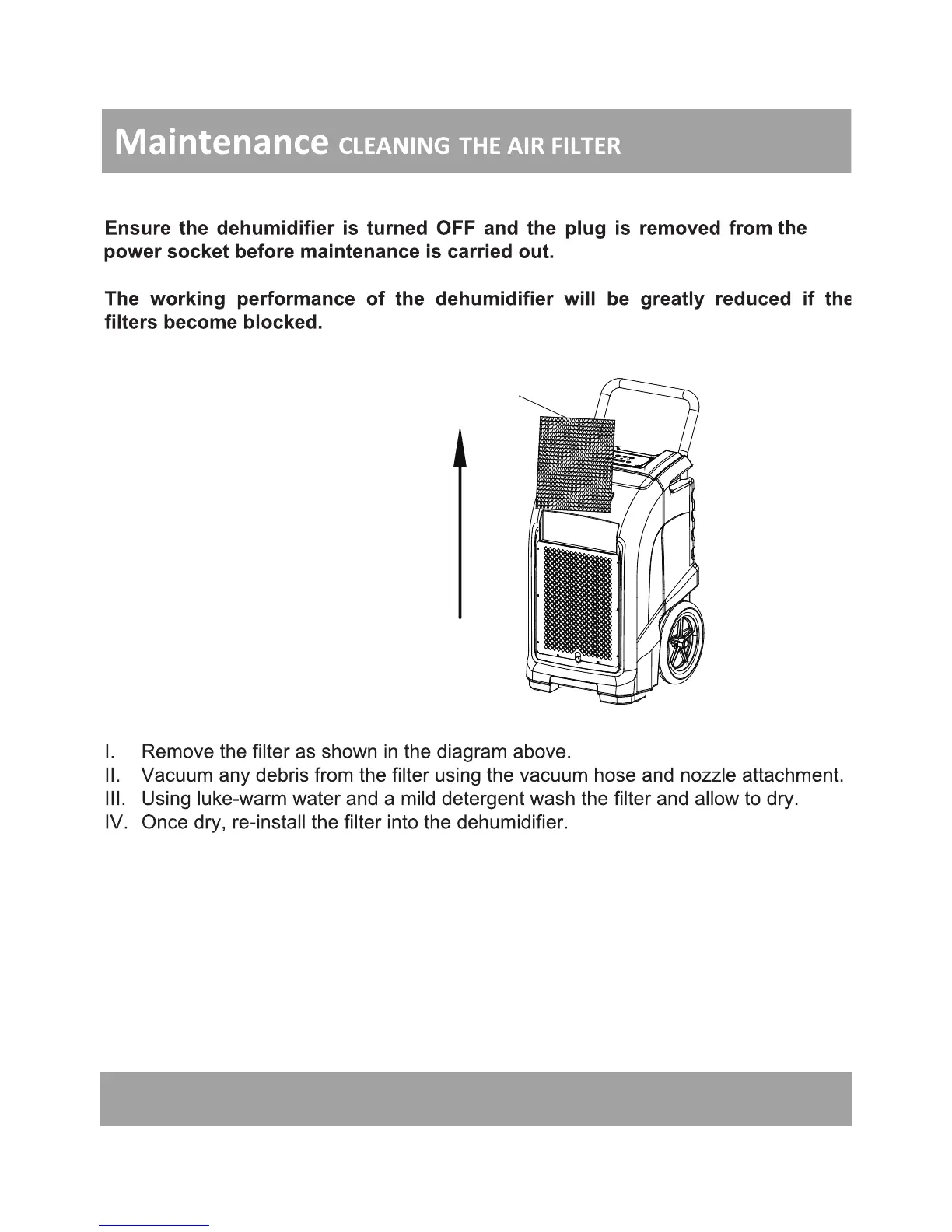Bluedri BD-76P - Maintenance; Cleaning the Air Filter