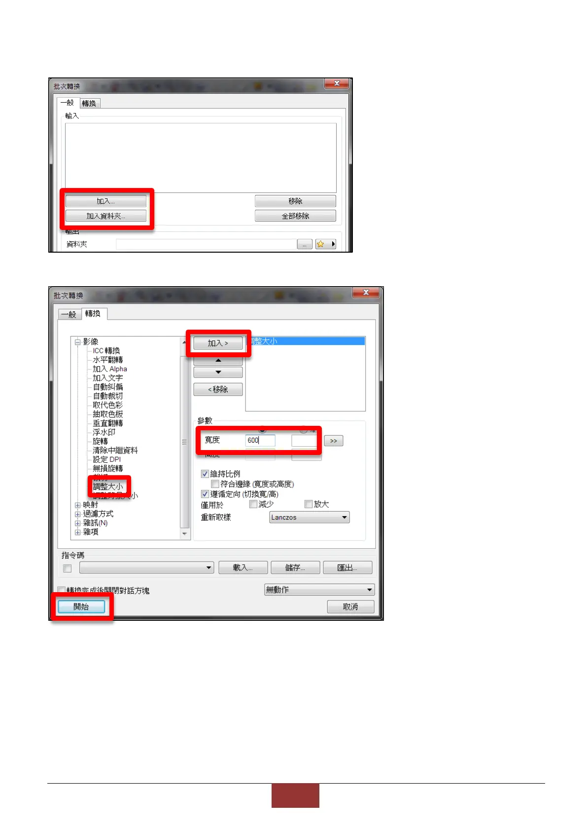 最後點擊【開始】,此軟體就會自動將圖片調整為寬 600 且長寬比不變的圖片。