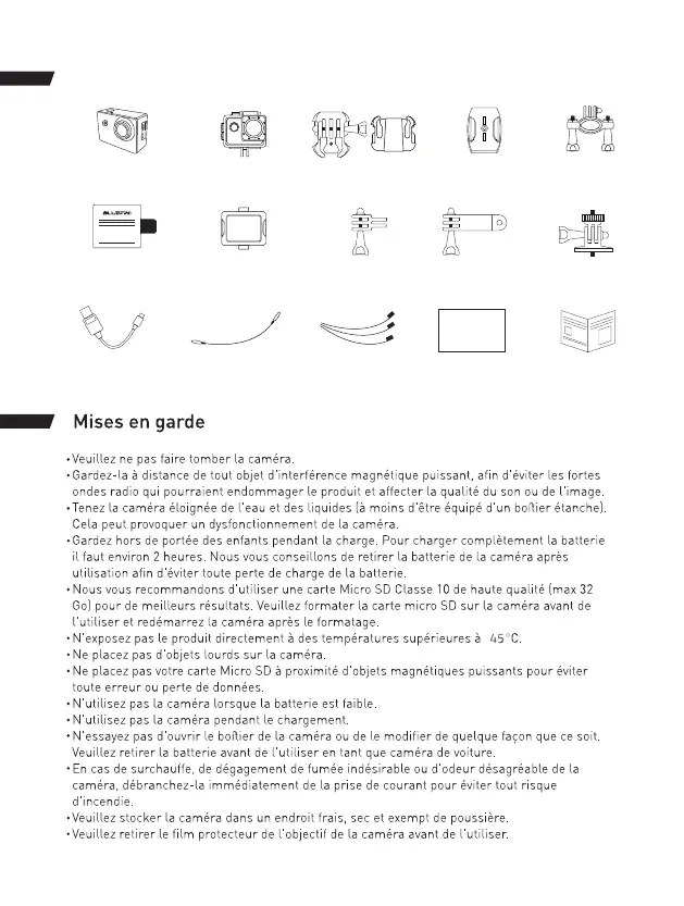 1 x Caméra C-Scape 1 x Etui étanche 2 x Clip de montage 2 x Patins de