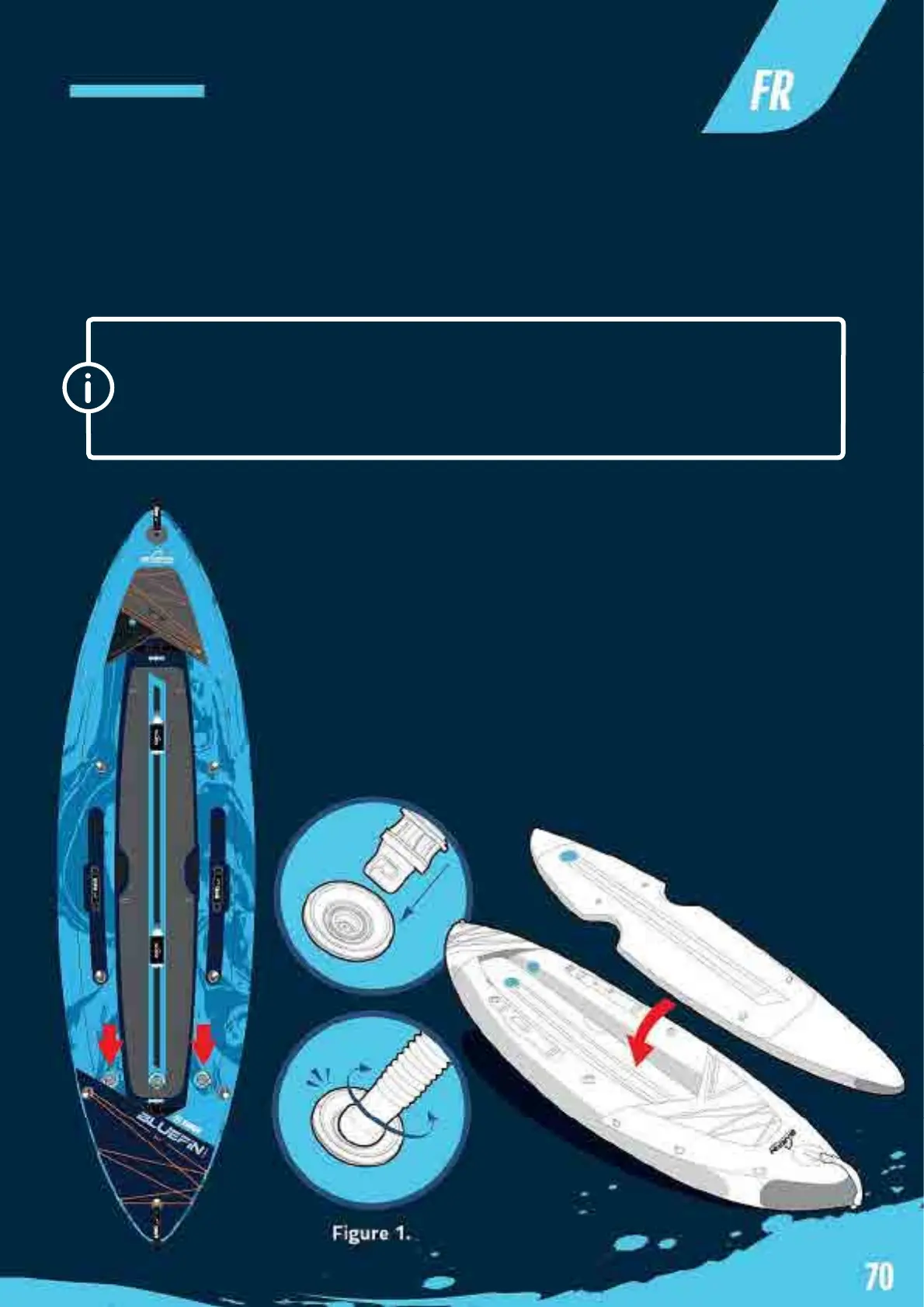 ● Gonflez les chambres latérales du corps du kayak jusqu'à mi-hauteur.