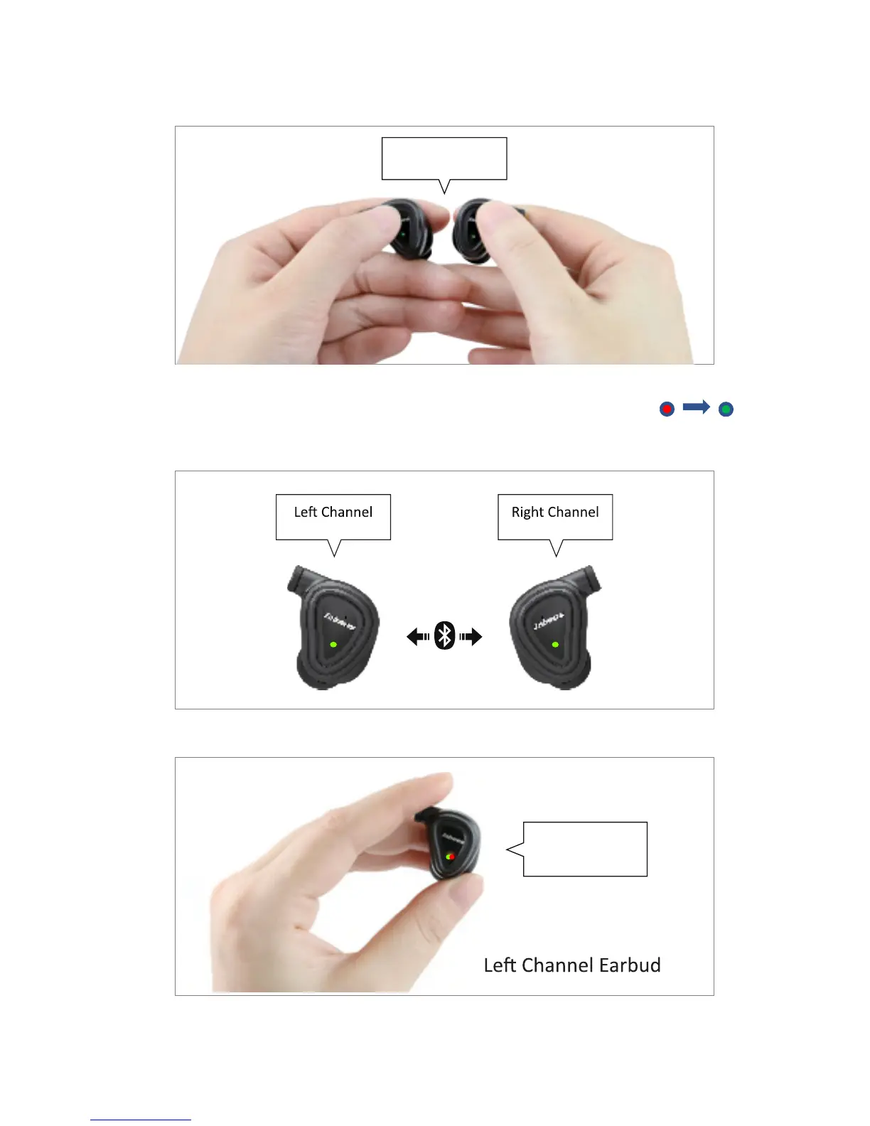 The LED light of main earbud (left channel) flashes in red & green, it