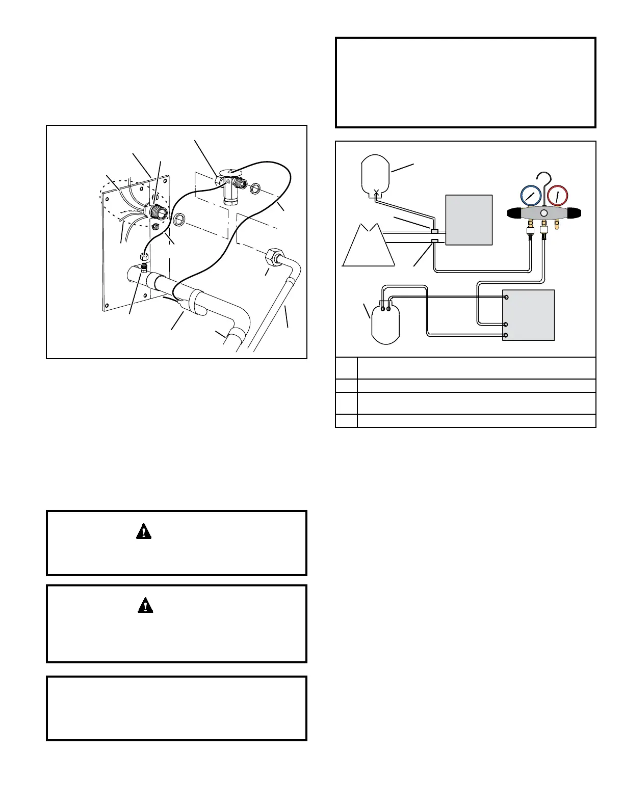 B Refrigerant gauge set (low side) to the liquid line valve.