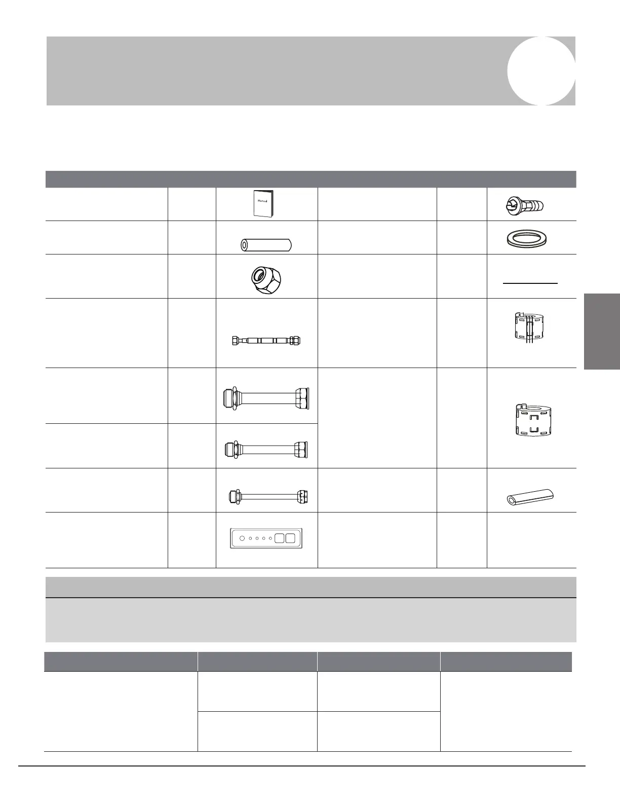 The air conditioning system comes with the following accessories. Use all of the installation parts and
