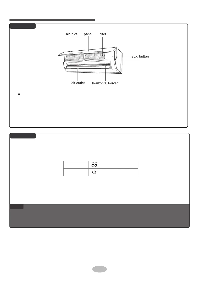 If remote controller is lost or damaged, please use aux. button to turn on or turn off the air
