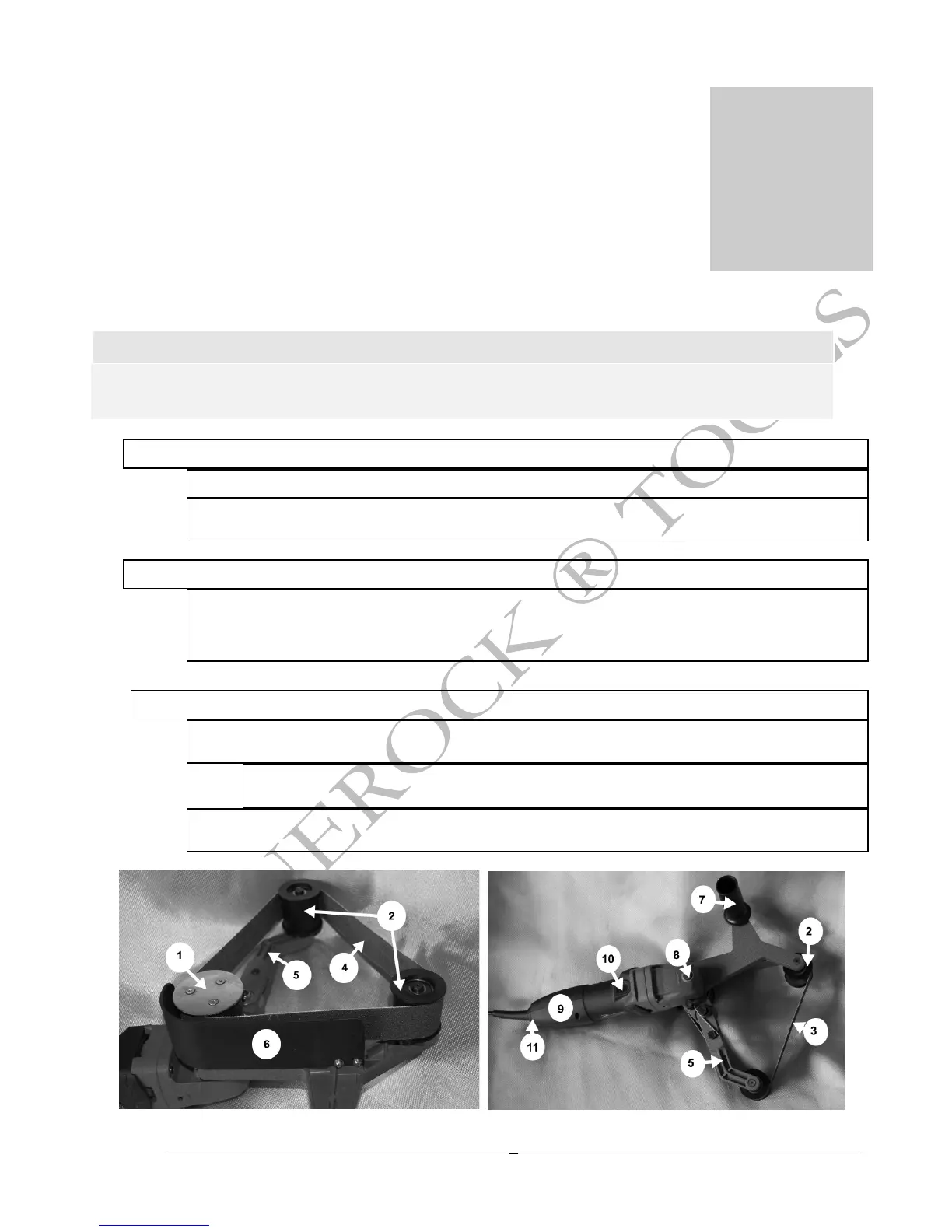 the sanding belt. The two smaller secondary drive wheels also make contact with the non-abrasive side of