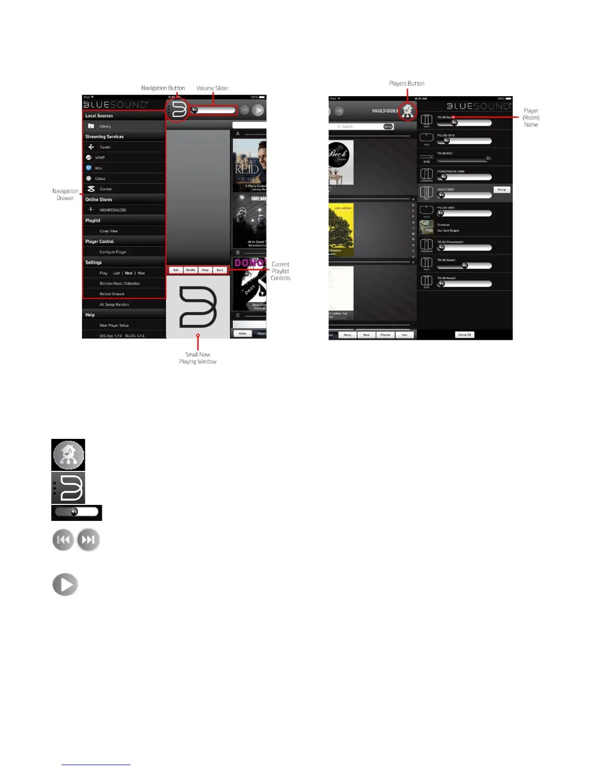 Players Button – Select this button to show all active Bluesound players (rooms) available on your network.