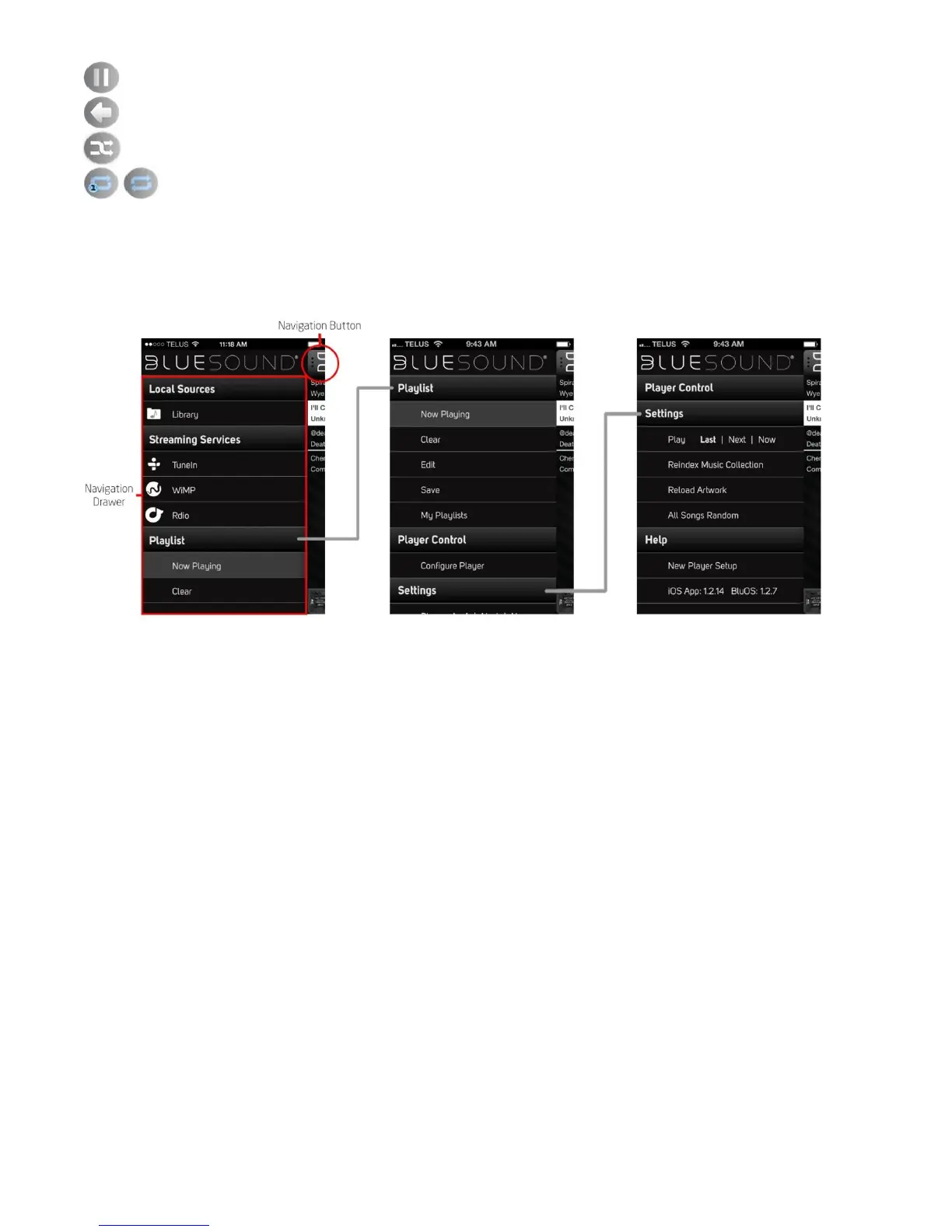 The following explains the function of each item in the Bluesound Navigation Drawer.